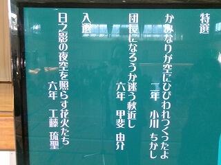 本校児童3名が、ジュニアの部で入賞しました。小学生は県内253句の応募がありました。その中で2名が特選、1名が入選というすばらしい成績でした。おめでとうございます!