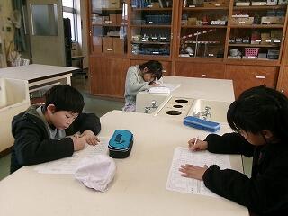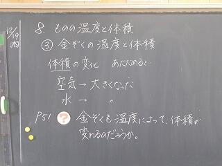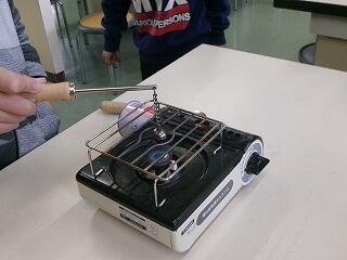 4年生が理科で「金属によって体積が変わるか」実験をしていました。