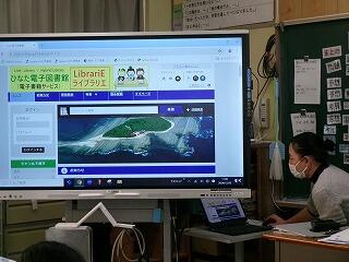 6年生が「ひなた電子図書館」の使い方を学習しました。他の学年も始めました。全校で読書活動に活用していきます。