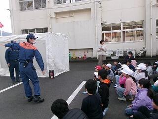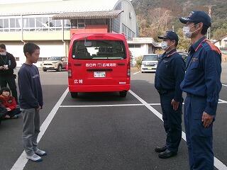 西臼杵広域消防本部の方々を講師にお招きして火災を想定した避難訓練を実施しました。スモーク体験をして、煙の中の視界の悪さも学びました。自分で考えて自分で行動できる生活をしてほしいと願います。御指導いただきありがとうございました。