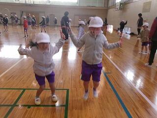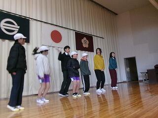 体育委員会が技の御手本を披露しました。先生たちも一緒に入りました。