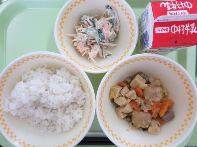 今日は日之影町のゆず果汁を使ったこんにゃくサラダでした。ゆずの酸味がきいていて、おいしくいただきました♪子どもたちは昨日に比べると時間がかかっていましが、味わって食べていました。