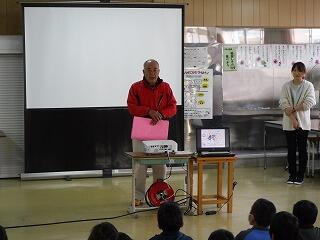 最後に子どもたちが書いたメッセージをプレゼントとして渡しました。この集会をきっかけとして、子どもたちが命の大切さについて考え、感謝の気持ちをもって食べることにつながればいいなと思います。