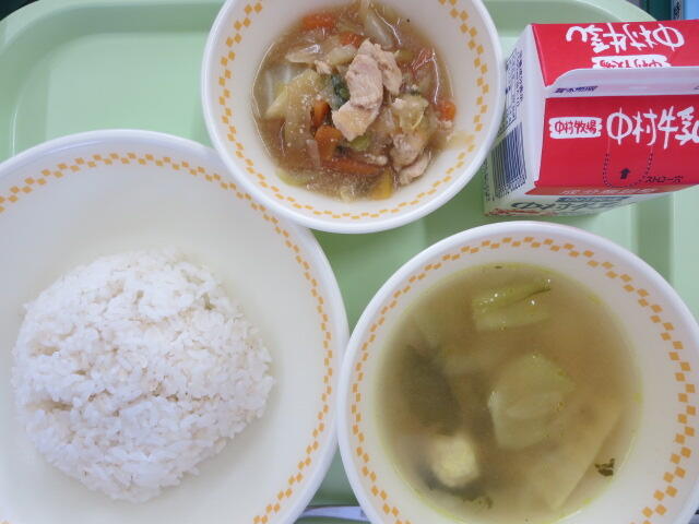 【ぶたキムチ丼 ミネストローネ 牛乳】