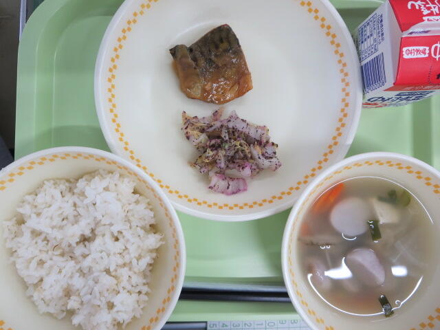 さばのみそ煮は骨までやわらかく、甘い味付けで子どもたちも好きなメニューです。ある学年ではタレまでおかわりして食べてくれました。今、魚を食べる機会が減ってきていて、特に若い世代の魚離れが進んでいるそうです。少しずつでも食事に取り入れていけるといいですね。