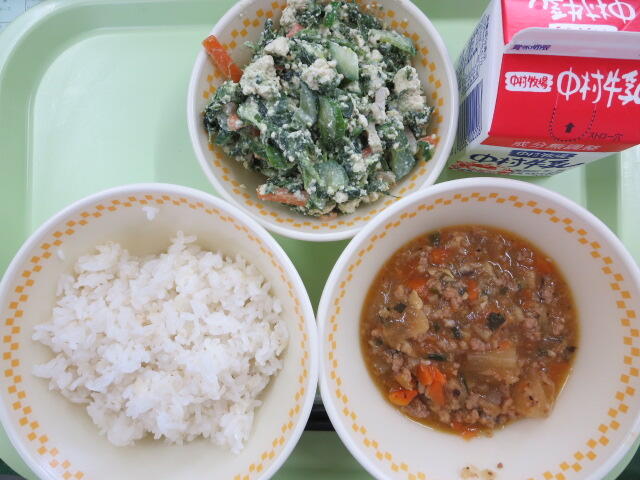 【麦ご飯 マーボー大根 洋風白あえ 牛乳】