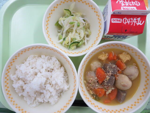 じゃがいもは、昔からドイツ、デンマーク、フランス、スウェーデンなどでよく食べられています。栽培方法が簡単で、どこでも作ることができますが、特に寒い地方でよく育ち、日本では北海道が多く作られています。じゃがいもは日持ちがよく、1年中いつでも使え、ビタミンCが多いので、冬に野菜がとれないところでは野菜のかわりにもよく食べられます。今日の給食のような煮物から、スープ、コロッケ、カレーライス、フライドポテトなど、いろいろな料理に使われていますね。味わって食べてください。