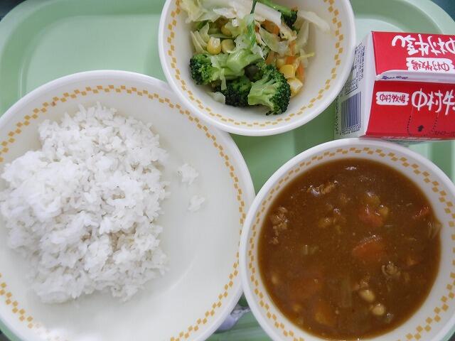 【麦ご飯 厚あげのカレーに 米粉めんサラダ 牛乳】