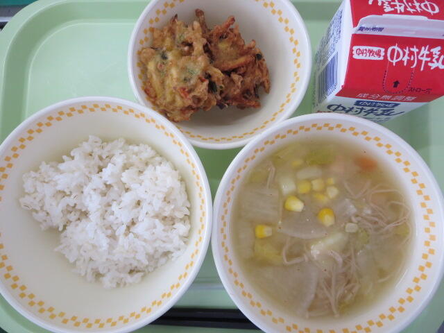 今日の小さいおかずは「がね」でした。私が宮水小に来てからは初めてのメニューでした。1つ1つ形を作って揚げるので、とても大変だったと思うのですが、調理員さんがおいしく作ってくださいました。