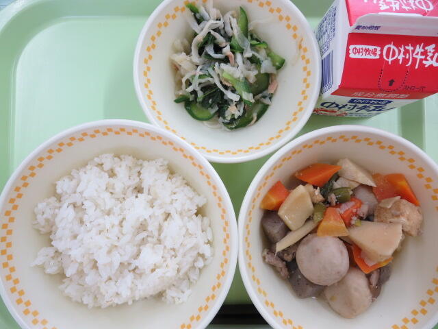 ★最近国語で勉強した内容なので、1年生はとても楽しみにしていました。1年生以外の学年でも、お話を思い出しながら食べていたようです。10月の給食だよりにレシピを載せています。ぜひ、御家庭でも作ってみてください。