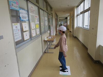 マスクは、登校中(バスの人以外)、運動時以外はつけましょう。登校後は校門の前で必ずつけるようにしましょう。また、鼻が出ないように注意してください。マスクのサイズが合っていない人、ゴムがゆるい人は、おうちの人に調節してもらいましょう。