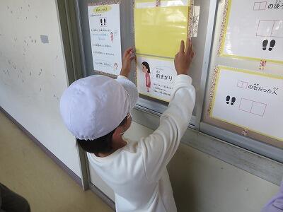 11月1日は、「姿勢の日」です。そこで、保健室の前に姿勢チェックの掲示物を掲示しました。いろんな人が楽しそうにチェックをしていました。