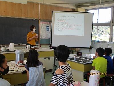今日は、5年生の集合学習で、一心園の甲斐泰世様を講師にお招きして、釜炒り茶について学習しました。