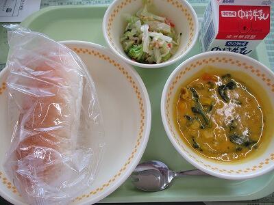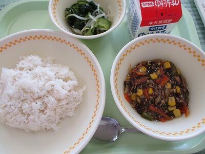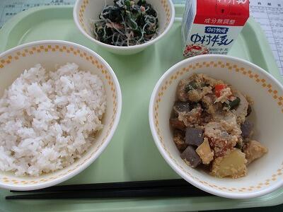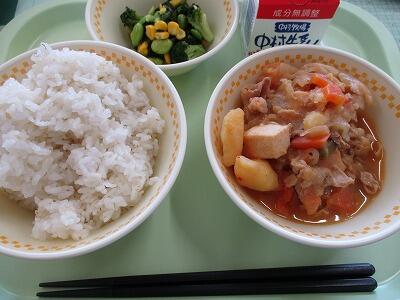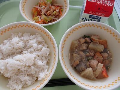 今日は、1年生の入学と、2~6年生の進級をお祝いする献立です。そのため、みんな大好きな高千穂牛を使ったビーフカレーにしました。高千穂牛のうまみたっぷりのとてもおいしいカレーでした。