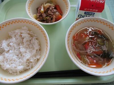 今日は、しょうがをたっぷりと入れた豚肉のしょうがいためでした。しょうがには、殺菌作用や体を温めてくれる効果があります。今日は、むしむしと蒸し暑かったので、しょうがのさっぱりとした後味で、食欲がわきました!