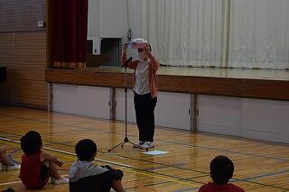 全校朝会で、歯を大切にするために守ってほしいことを3つお話をしました。