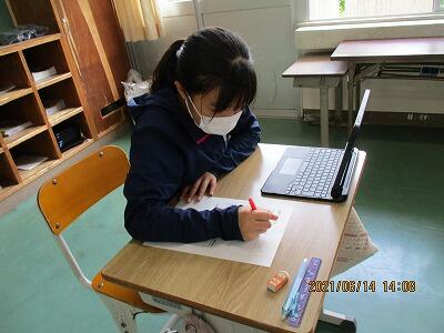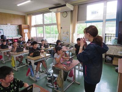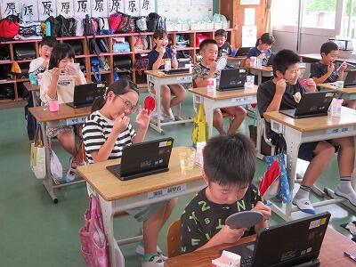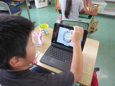 初めにタブレットで歯肉炎について調べ、その後予防のために、ブラッシング法とフロッシング法を練習しました。みんなとても上手にできていたので、おうちでも実践してほしいと思います