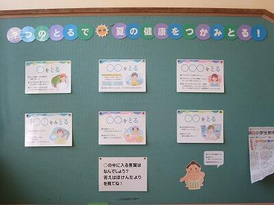 保健の掲示板に夏の暑さにならないための掲示物を掲示しました!