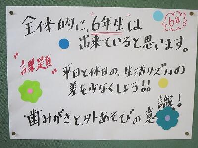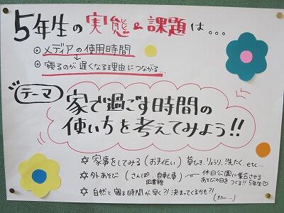 内容は、各学年の健康課題を改善するために今年度取り組むテーマを話し合って決めるというものでした。26名の方々に参加していただき、話し合っていただいたのですが、和気あいあいとした中でも積極的な意見交換がなされ、本当に充実した学校保健委員会になりました。ありがとうございました。それぞれの学年で決まったテーマは、今日の学級懇談会のときに報告していただきましたが、また改めてプリントで配付させていただきますのでよろしくお願いします。さらに元気な宮水小学校にしていくために、力を合わせて頑張っていきましょう
