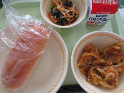 今日は給食のメニューの中でも人気がある「揚げパン」です。11月の献立表を見て、「揚げパンがある~!」と喜んでくれる人が多くて、うれしいです。