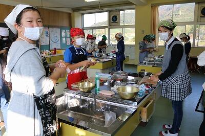 家でも皮むきなどの練習をしてきた人もいて、手際よく調理をすすめていました。ジャガイモの下ゆでが足りない班もあり、一つ一つの作業の大切さもあらためて分かったのではないでしょうか。