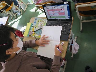 2年生は、算数の学習で、かけ算九九を使った練習問題をしていました。