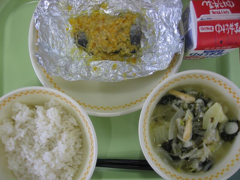 【麦ご飯 魚のホイル蒸し 切りぼし大根のみそ汁 牛乳】