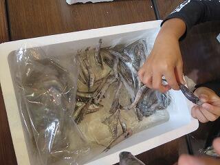 給食時間には町内のきゃべつ生産者の方も加わり、一緒に給食を食べて交流を深めることができました。(11月から、今年も町内の野菜をどんどん使っていく予定です。作っている人の顔や人柄が分かると、食べる時の気持ちも違ってきますね昼休みは全校児童が展示を見学・体験しました。生の魚を触ったり、しいたけの駒打ち体験をしたりしてとても楽しい交流会になりました!