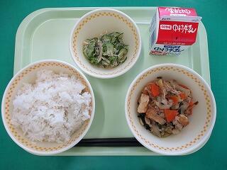 今日の家常豆腐について、子どもたちから「何て読むのですか?」とたくさん聞かれました。これは、「ジャーチャントウフ」と読みます。中国料理の一つで、豆腐を揚げて野菜などと一緒に炒める料理を給食では厚揚げを使ってアレンジしました。厚揚げに味がよくしみていてとてもおいしかったです。