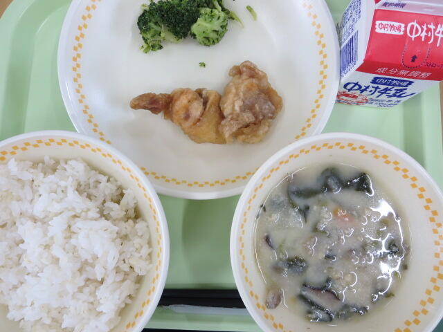 【麦ご飯 とり肉のレモン和え ゆでブロッコリー うの花汁 牛乳】