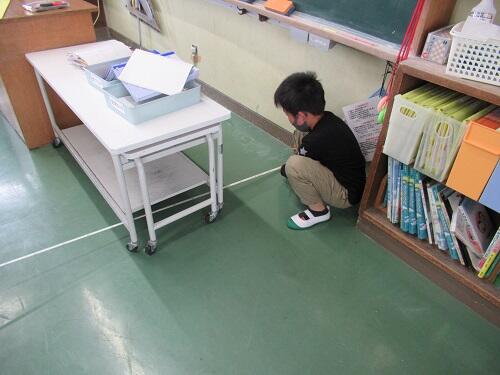 5年生は、算数で容積の学習をしていました。実際に巻き尺で測って、計算して求めました。