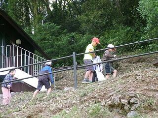 キャンプ村を出発する前にごみを拾ったり布団を運んだりしました。