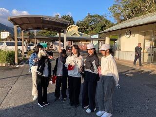 高巣野小と合流しました。高千穂道の駅で結団式をしました。