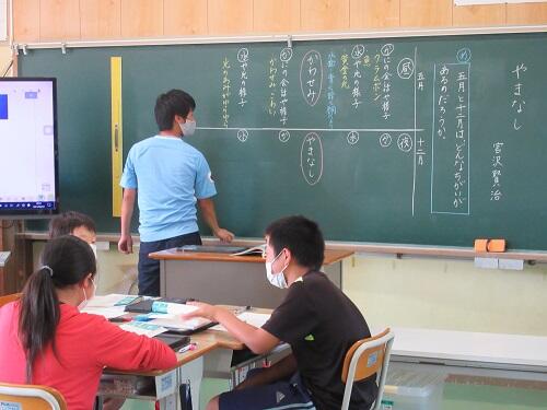 6年生は、国語で「やまなし」の内容の読み取りをしていました。みんなで力を合わせて、文章に即して場面の様子を想像しながら読み取っていました。それにしても宮沢賢治の独特の世界観を読み取るのは大変難しいです。