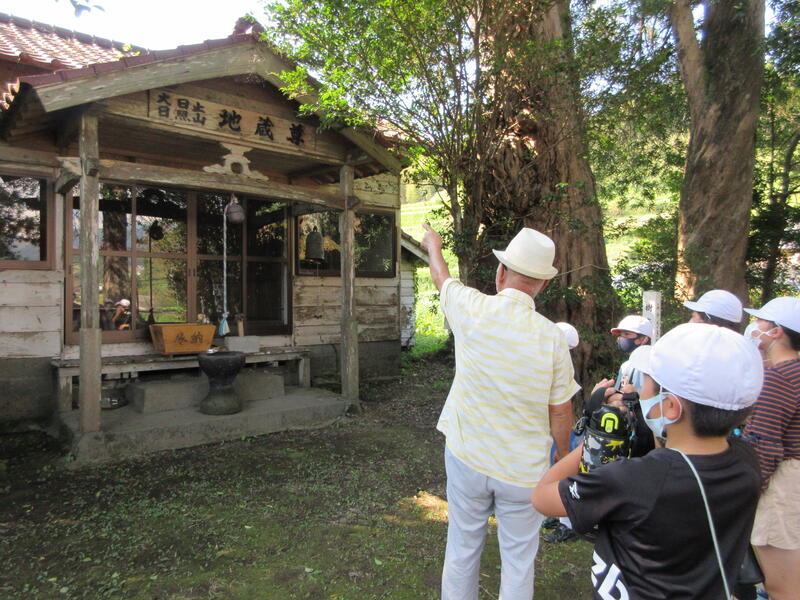 さらに、少し歩いて「大人神社」へ行きました。ここでは、以前大人歌舞伎を踊っていたステージのような場所がありました。また、大人という地名の由来についても教えていただきました。