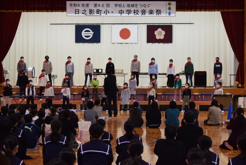 プログラム3,4番は、日之影小学校による合唱と合奏です。