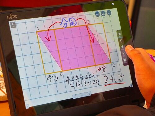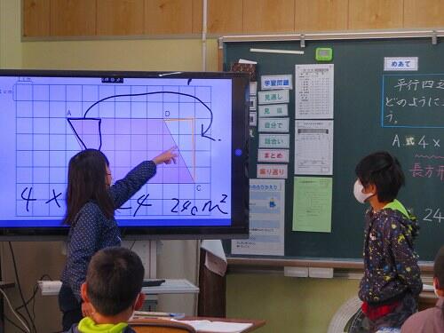 5年生は算数で平行四辺形の面積をどのように求めればよいかを学習しました。これまで学習した三角形や長方形の面積の公式を使って平行四辺形の面積を求める様々な考え方が出されました。話し合う中でしっかり納得しながら学習をすすめる姿が見られました。