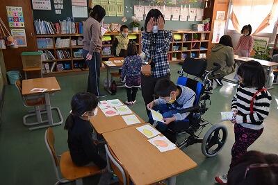 1年生が教室でお店やさんごっこをしていました。生活科と思ったら国語の授業でした。「あいさつをする」「ていねいな話し方で話す」「はきはき話す」という3つの目標をもって活動していました。バナナは2000円の高級品でした。