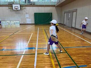 寄贈していただいたグローブを使って、1、2年生がキャッチボールに挑戦しました。