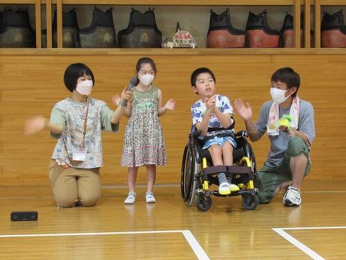 日之影小学校やしろやま支援学校のお姉さん二人がうまくリードしてくれました。