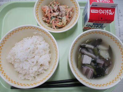 今日の給食の吉野汁とは、すまし汁にくず粉を入れて、とろみをつけた汁のことをいいます。くず粉の産地として奈良県の吉野地方が有名なので、吉野汁という名前がつけられたそうです。