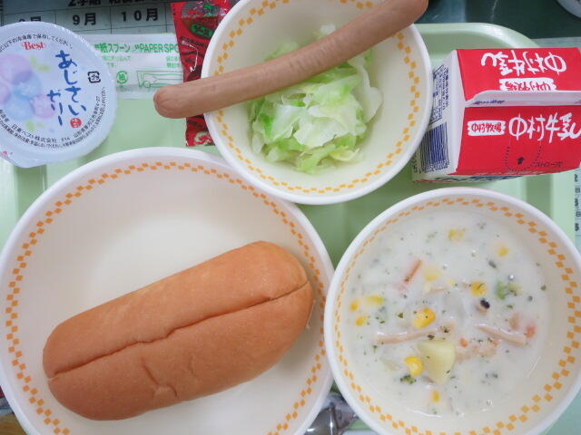 【ウインナードッグ クラムチャウダー あじさいゼリー 牛乳】