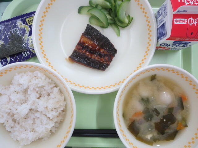 【うなぎのかば焼き丼 しおもみきゅうり みそしる 牛乳】