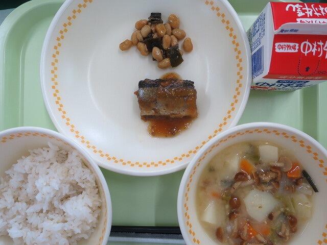 【麦ご飯 さんまのみぞれ煮 ぶどう豆 なめこのみそ汁 牛乳】