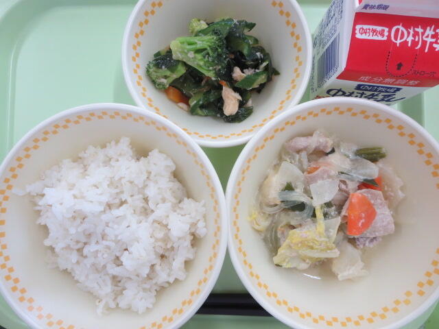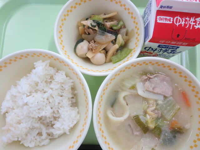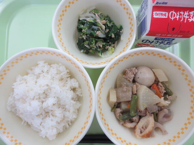 今日の給食はだいこん、里いも、にんじん、れんこんなどの根菜をたっぷり使った野菜のみそ煮でした。給食での煮物と和え物の組み合わせは塩分もおさえられ、食物繊維がたっぷりとれます。子どもたちに人気のあるメニューではありませんが、体にいいのでたくさん食べて欲しいと思います。
