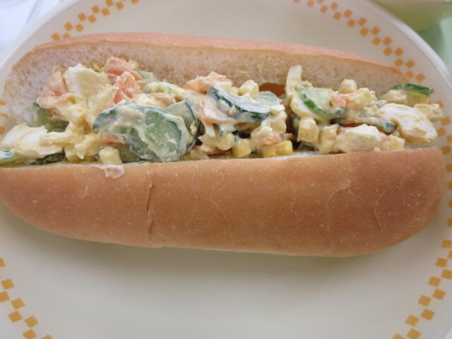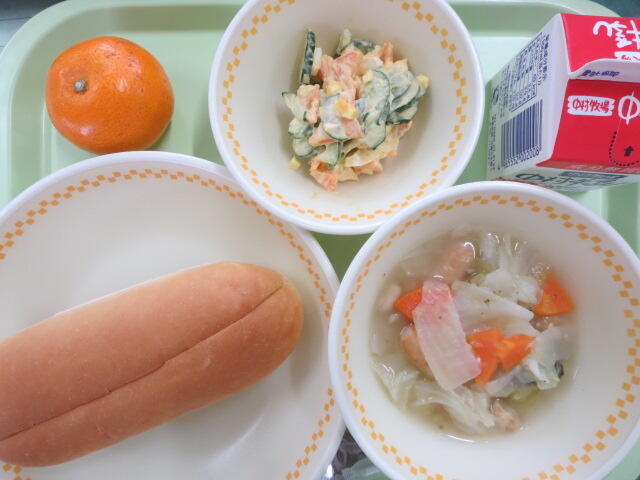 今日は卵サンドでした。自分ではさんで食べると、いっそうおいしく感じますね。みかんもとても甘くておいしかったです