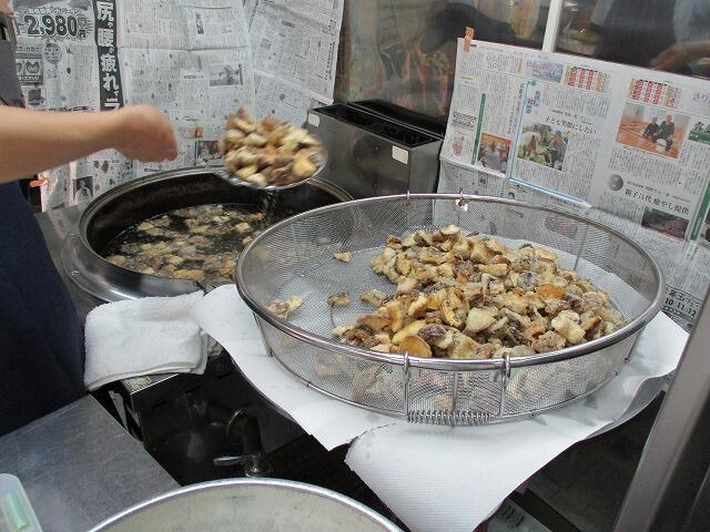 しいたけを切って、片栗粉をつけて揚げていきます。しいたけが肉厚でとてもおいしそうです!