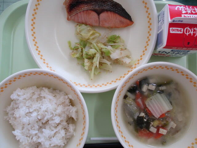 1月24日は学校給食記念日です。明治時代に山形県で始まった学校給食は、戦争の食料不足の中、給食を続けることができなくなり、一度中断されました。戦争が終わり、おなかをすかせていた子どもたちを助けようと、アメリカから脱脂粉乳などがプレゼントされ、また給食を始められることになりました。今日はその給食記念日にちなんで、給食の始まりと言われるごはんと魚にしてみました。今の日本は「飽食」と言って、食べ物にあふれ、なに不自由なく食べることができますが、世界には食料不足で飢えに苦しんでいる人もいます。感謝の気持ちを忘れず、食べ物を無駄にしないようにしましょう。