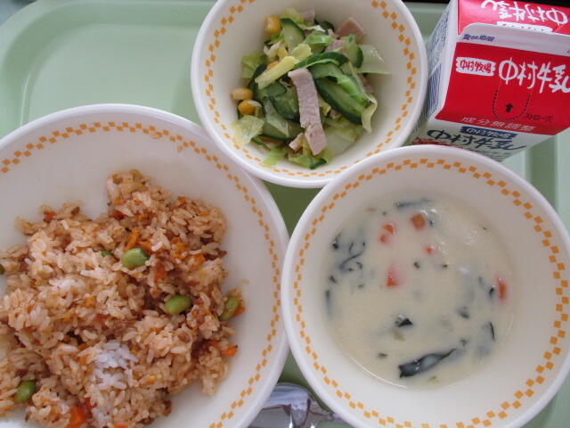 【ミルクパン いためビーフン 枝豆サラダ 牛乳】