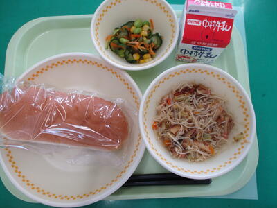 給食ではビーフンの量が多いので、混ぜる作業が大変です。